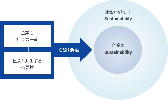 (企業の社会的責任)の側面を踏まえた上で、「環境への取り組み」「多様性への取り組み」という具体的なテーマをもって取り組み、お客様や取引先